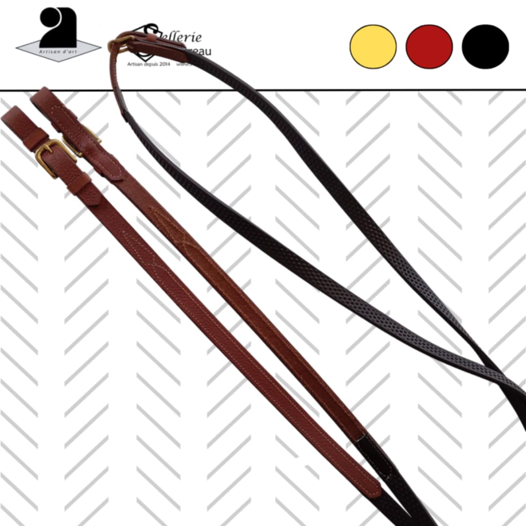 Rênes : découvrez nos rênes pour Brides et Bridons entièrement sur mesure et personnalisable en cuir plein épaisseur en Tannage Mixte (Minéral / Végétal).